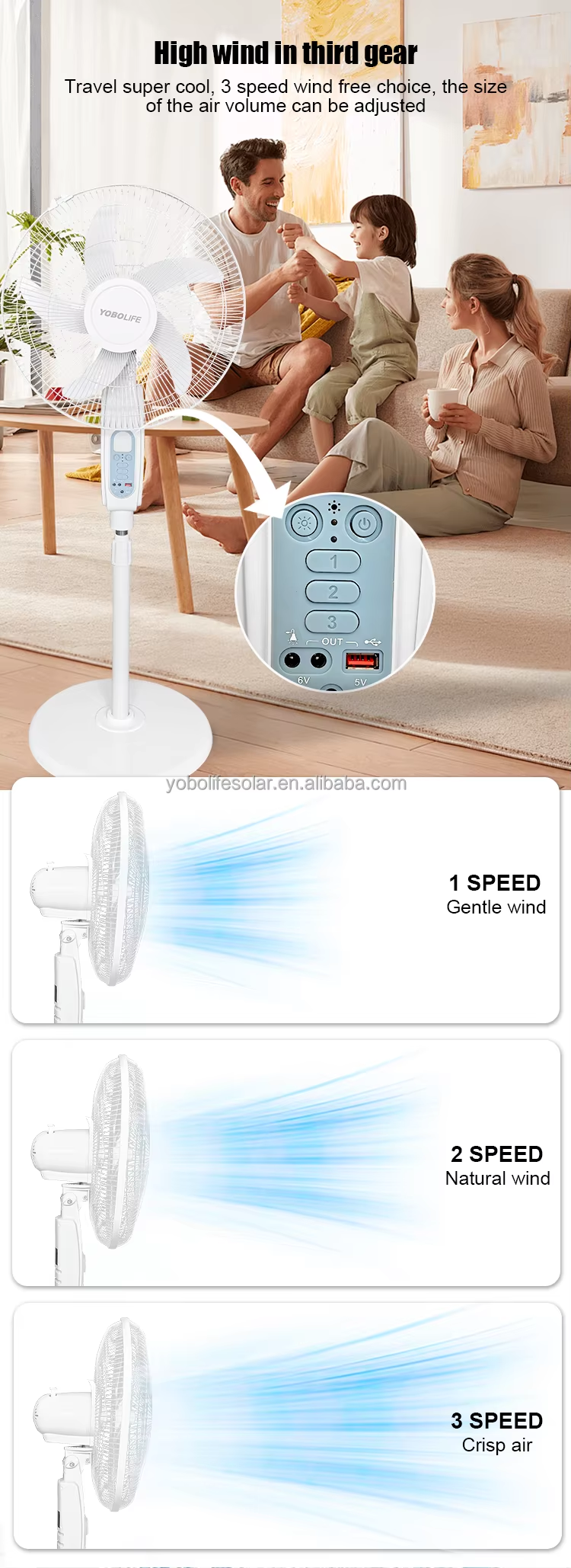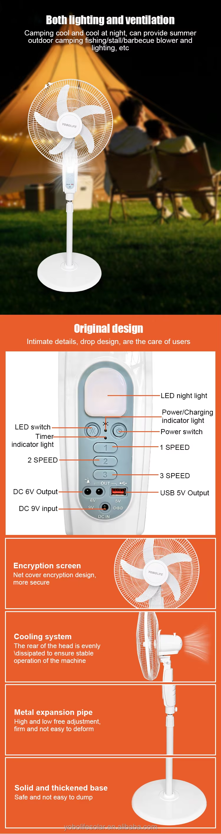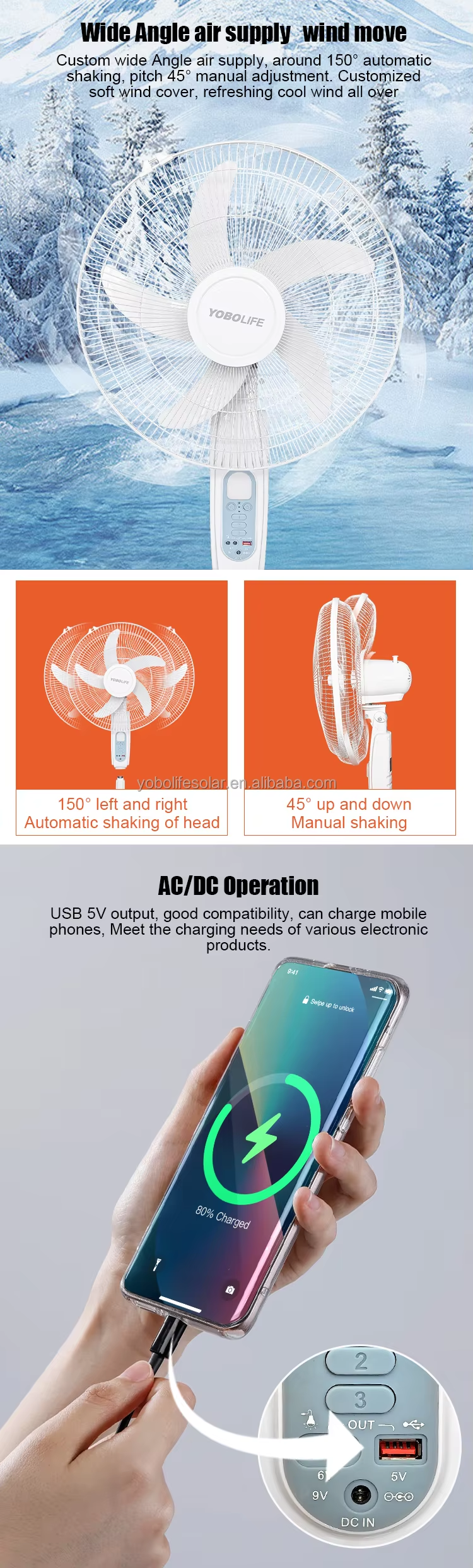 Indoor or outdoor cooling, emergency mobile charging and lighting
