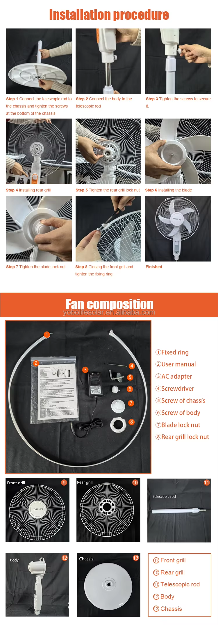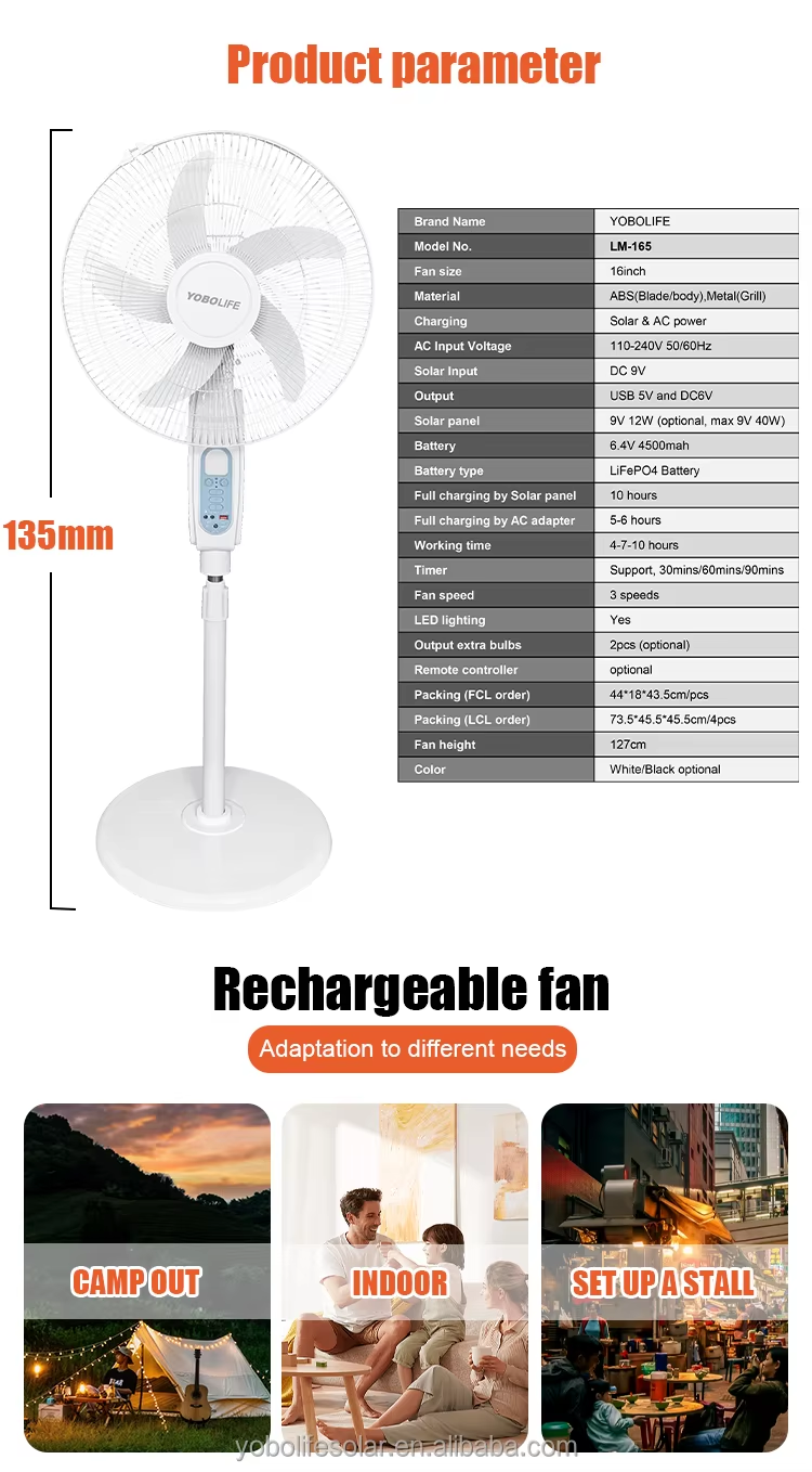 16 Inch Solar Rechargeble Fan