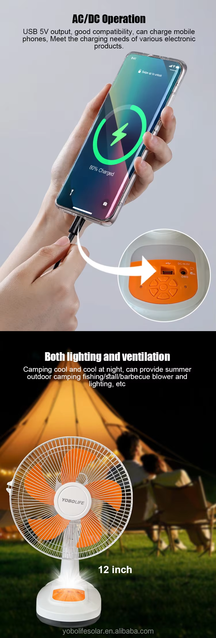 Refroidissement intérieur ou extérieur, chargement mobile d'urgence et éclairage