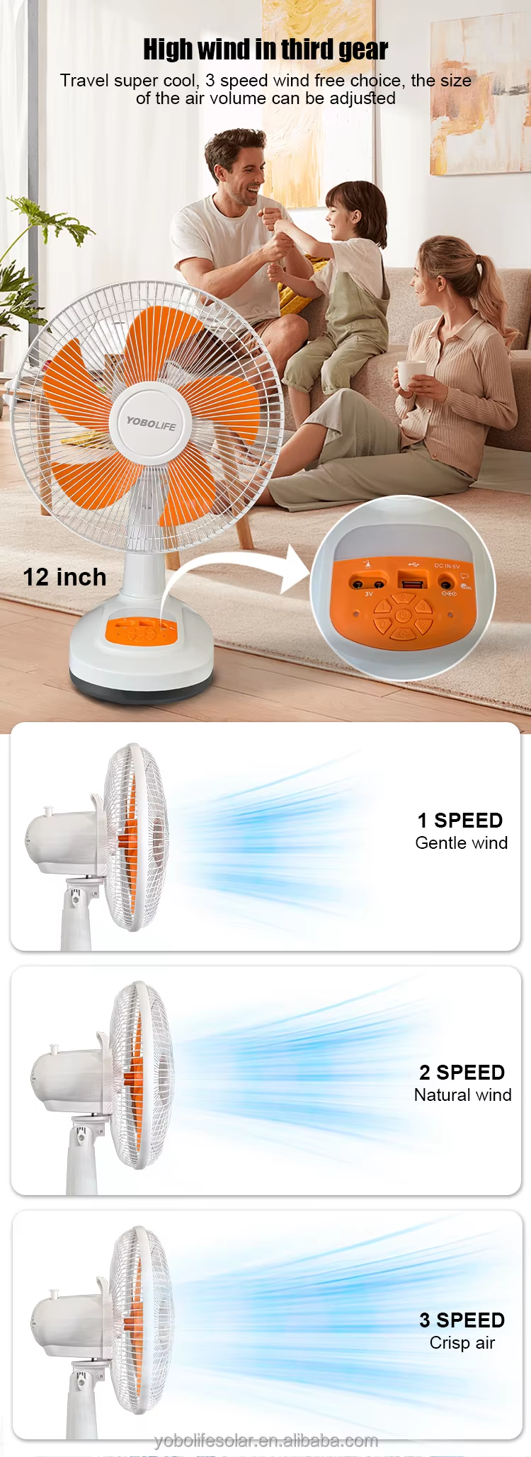 Ventilateur solaire de table de 16 pouces